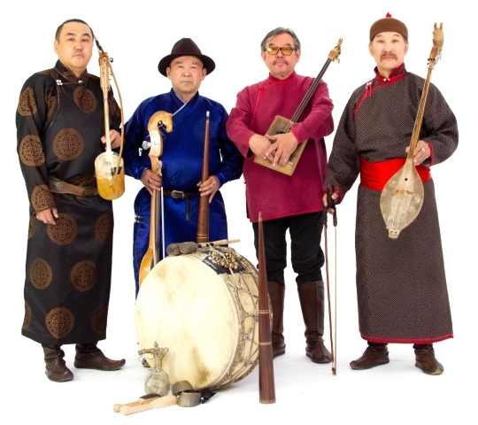 Tuvan throat singers. The music is based on native Tuvan folk traditions in instruments and singing. In recent years western instruments like guitar and electronics are added.